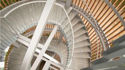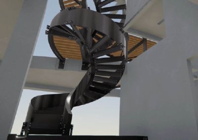 Tekst: <p>Le nouvel escalier en colimaçon dessert plusieurs niveaux d’un penthouse dans un bâtiment existant. La construction comprend l’escalier elliptique et en colimaçon avec des plaques torsadées ainsi que les différents niveaux du penthouse.</p><p>L’escalier repose sur une lourde poutre en béton qui a été exposée et mesurée avec précision. Le modèle 3D a ensuite été utilisé pour traduire la torsion de l’escalier en dessins exécutables, en alignements de dalles et en assemblage de la structure. </p><p>Bien que l’escalier en colimaçon ne pèse que 4,2 tonnes au total, il a été divisé en plusieurs parties de construction. Ces pièces ont en fait été hissées au sommet du penthouse et introduites par une étroite ouverture sur le toit du bâtiment. Les différentes parties de la construction ont ensuite été soudées ensemble sur place. Des accouplements d’assemblage ont été utilisés pour maintenir les relations entre les différentes parties de la construction. </p>
