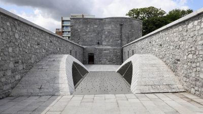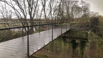 Tekst: Le pont reliant les ruines du château Ter Elst à Duffel a été officiellement inauguré en 2025 par la Fondation Kempens Landschap et la commune de Duffel. Ce nouveau pont piétonnier relie l'île du château au Muggenbergpark et au chemin de halage le long de la Nete, et fait également office de voie d'évacuation sécurisée. L'inauguration marque une étape importante dans la restauration des ruines, qui devrait être entièrement terminée à l'horizon 2026. Le site restauré sera destiné à accueillir des événements, et le nouveau pont viendra renforcer cette fonction en améliorant l'accessibilité. Le pont de 20 m de long est fabriqué en acier auto-patinable. Il a été transporté en une seule pièce et assemblé à l'aide d'une grue de montage.