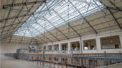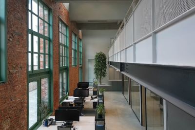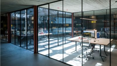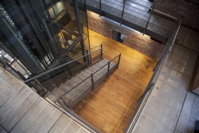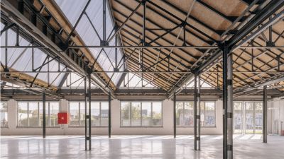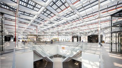 Tekst: Lors de cette transformation, la structure de toit shed typique des anciens bâtiments d’usine a été réinventée comme espace utilitaire au moyen d’une structure en acier à mezzanine, suspendue à des poutres de toit en acier. L’application d’une structure en acier permet en même temps de limiter le plus possible le nombre d’éléments structurels perturbants et de créer pratiquement un espace de plain-pied. Les éléments en acier peuvent être joliment combinés avec les façades en pierre de taille et un revêtement de toiture avec des panneaux sandwich.