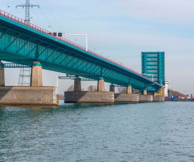 Tekst: Le pont Galecopperbrug qui enjambe le canal Amsterdam-Rhin sur l'autoroute A12 près d'Utrecht est le deuxième pont le plus fréquenté des Pays-Bas. Chaque jour, environ 220.000 véhicules circulent sur ce pont à haubans en acier, dont le tablier est suspendu à des pylônes par des câbles (haubans). Afin de garantir la sécurité et la fiabilité du pont à l'avenir, 'Rijkswaterstaat' (Gestion des eaux d'État) a réalise d'importants travaux d'entretien jusqu'à fin 2025. Ceux-ci sont nécessaires, car la charge supportée par le pont a considérablement augmenté au cours des dernières décennies due à l'augmentation du trafic de poids lourds et de voitures. À cela s'ajoutait la corrosion des câbles au niveau des ancrages. Les câbles arrivant en fin de vie, ils ont donc été remplacés. Afin de garantir la sécurité structurelle et la durée de vie de cette liaison vitale, tous les câbles ont été remplacés. Grâce à une technique innovante d'utilisation de l'acier, à un phasage intelligent et à une gestion minutieuse du trafic, les désagréments pour les automobilistes ont pu être réduits au minimum. Ce projet est donc un exemple phare d'ingénierie innovante pour les ponts en acier. Le remplacement des câbles en acier, alors que le pont reste en grande partie ouvert à la circulation, est une opération unique en son genre aux Pays-Bas et à l'échelle internationale.