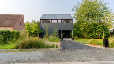Tekst: Un bungalow des années soixante, dont l’intérieur avait déjà été rénové, a été transformé en un bureau moderne et ouvert avec habitation. La construction en acier du bureau a permis le porte-à-faux de l’étage, et la création, par ce biais, d’un carport ouvert. Les façades, tant de l’extension que de l’habitation existante, ont été finies avec des panneaux sandwichs prélaqués en acier autoportants (Kingspan Evolution) et de la laine minérale supplémentaire. La construction en acier a conféré au bâtiment un caractère et une forme qui lui sont propres.