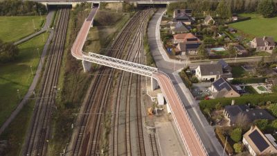 Tekst: <p>Le pont cyclable au-dessus d’un faisceau ferroviaire à Lier en acier ne mesure pas moins de 250 m de long. Il comprend le pont principal en acier au-dessus d'un tronc de chemin de fer et 2 culées - une culée de 125 m de long située entre 2 troncs de chemin de fer et une culée de 85 m de long entre un tronc de chemin de fer et une rue.<br />La travée principale en treillis au-dessus des voies ferrées mesure 42 m de long, 5 m de large et pèse 75 tonnes : les triangles du pont, scellés par des panneaux de verre, offrent une très belle vue sur les environs. <br />L'utilisation de profils arrondis et de couleurs claires apporte l'élégance et la finesse typiques d'un pont cyclable contemporain. Le motif unique du treillis - constitué de panneaux de verre - est ludique et transparent.<br />L'éclairage LED est intégré sur toute la longueur du garde corps. Le pont et les deux ponts d'approche s'animent ainsi la nuit et constituent une balise douce et sûre pour les cyclistes de la région.</p>