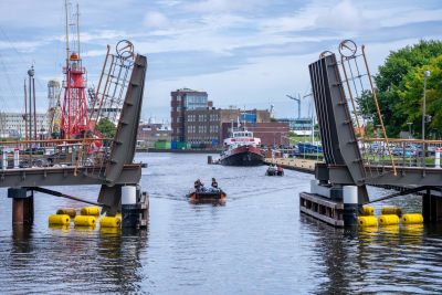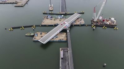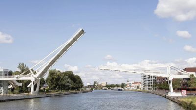 Tekst: Au cœur de la ville de Willemsoord, à Den Helder (Hollande du Nord, l'ancien pont-flottant étroit a été remplacé par un nouveau pont. Ce dernier a été conçu dans un souci de confort, mais aussi dans le respect de l'histoire. Après la conception architecturale, le travail s'est poursuivi au sein d'une équipe de construction composée de l'architecte, de l'entrepreneur et du constructeur. La longueur totale du pont est de 52 m et la partie mobile se compose de deux tabliers. Tout le défi de la conception structurelle consistait à faire en sorte que les deux tabliers s'emboîtent intelligemment l'une dans l'autre. Il a été décidé d'équilibrer et d'actionner les deux tabliers séparément. Pour l'entraînement, le choix s'est porté sur des actionneurs. Le recours à des actionneurs dans un pont à double bascule est une première. Au total, 210 tonnes d'acier ont été utilisées dans la construction du pont. Le choix de l'acier a permis de réaliser l'ensemble de la travée et de la partie mobile en usine. Le montage de tous les éléments du pont ainsi réalisé n'a pris que deux jours. Les doubles tabliers, les garde-corps et ornements en acier, les actionneurs nécessitant peu d'entretien et le tablier en bois épuré font de ce pont une construction unique.