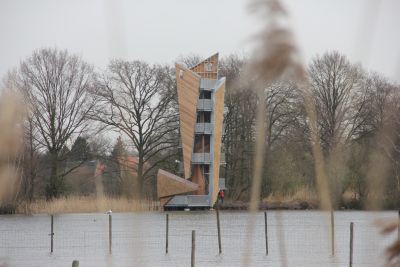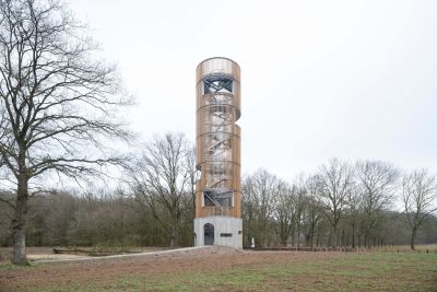 Tekst: A présent qu’une tour d’observation de 30 m garantit une vue magnifique sur la région, les amateurs de nature et d’architecture goûtent encore plus, désormais, le Sahara lommelsois, un petit échantillon de nature intacte qui fait partie du Paysage Régional de la « Basse Campine ». Cette construction est constituée de six triangles enchaînés qui sont entourés par environ quatre kilomètres de cordage marin. En enveloppant la tour du cordage alternativement lâche et tendu, on crée une référence subtile aux lignes ondoyantes du Sahara.