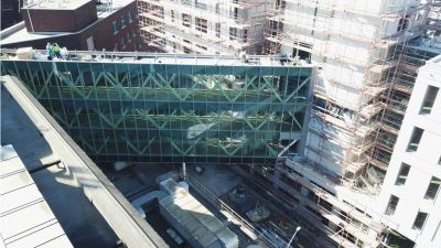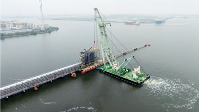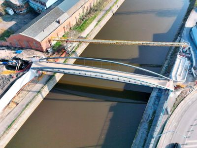 Tekst: Le 'Keel Crossing' à Sunderland dans le nord-est de l'Angleterre, est un nouveau point de repère dans le paysage urbain et fait partie du projet Riverside Sunderland. Le pont relie Keel Square au quartier de Sheepfolds, près du Stadium of Light. Conçu par Knight Architects et Arup, consiste d'une poutre principale en acier de 250 m de long et 7,5 m de large en forme de trapèze (1180 tonnes, S460) avec des panneaux de tablier en béton, à plus de 30 m au-dessus de la rivière Wear. Le résultat est un passage spacieux pour les piétons et les cyclistes, tout en permettant la libre circulation des bateaux. Victor Buyck Steel Construction a fabriqué la structure en acier en Belgique, divisée en quatre segments. La hauteur variable et le positionnement précis des goujons exigeaient une grande précision. À Wondelgem, les éléments ont été assemblés, conservés et équipés de Tuned Mass Dampers. Le montage à Sunderland s'est déroulé en deux phases à l'aide de pontons et de grues Mammoet. La travée centrale de 105 m a été soulevée à l'aide de vérins de levage et reliée aux autres segments. Après la mise en place, ont suivi les panneaux en béton et les finitions. Depuis son ouverture en août 2024, le pont a suscité beaucoup d'intérêt et est devenu un maillon essentiel pour des milliers d'utilisateurs quotidiens.