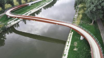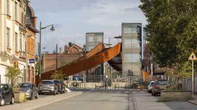 Tekst: Albi (près de Toulouse, FR), une ville au riche passé tumultueux, a obtenu en juillet 2010 le statut de patrimoine mondial de l’UNESCO pour son centre historique. C’est dans ce contexte qu’est née l’idée de créer une passerelle cyclo-piétonne qui agirait en porte-à-faux d’un viaduc ferroviaire du XIXe siècle.