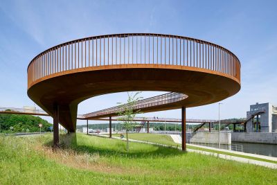 Tekst: Les ponts ferroviaires miniers conçus par ipv Delft pour Hoensbroek, en Limbourg, sont deux ponts cyclables robustes en acier qui regorgent de références à la riche histoire minière du site. Le design rappelle fortement les ponts ferroviaires en acier d'antan, avec des balustrades porteuses en forme de poutres en acier avec des cloisons verticales. Grâce à une solution intelligente avec des butées qui empêchent le pont de se déplacer dans son ensemble en cas de collision, il a été possible de prendre en compte une charge d'impact relativement faible. Le résultat : un tablier de pont élancé. Les deux ponts sont identiques dans leur conception, mais diffèrent dans leurs dimensions (11x5 et 24x5 m). Tous deux sont situés sur la Parkstadroute, une nouvelle piste cyclable et un sentier de randonnée de 34 km de long qui relie les attractions naturelles et touristiques de la région du Limbourg. À Hoensbroek, la Parkstadroute se trouve en partie sur le talus de l'ancienne voie ferrée minière, et c'est précisément là que se trouvent ces ponts en acier.