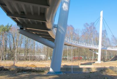 Tekst: D’une longueur de 258 m, la passerelle achevée à Seraing, relie le parc Trasenster aux Ateliers Centraux, ancien site industriel en cours de réhabilitation. Conçue dans un style architectural minimaliste, la passerelle s’intègre parfaitement au paysage urbain et naturel. Elle accueille les piétons et les cyclistes et se compose d’un tablier en béton soutenu par des poutres continues et des poutres transversales en acier. La construction a utilisé une structure primaire préfabriquée en acier pour une installation efficace. Le tablier du pont est construit en béton à l’aide d’un coffrage perdu en acier et soutenu par des poutres de bordure HEB280 continues qui sont reliées à des poutres transversales en acier massif. Ces poutres reposent sur des colonnes en profilés d’acier HEA600 fixées dans des fondations carrées en béton. Le pont s’étend sur une distance régulière de 7,75 m, sa plus longue portée s’étendant jusqu’à 17,2 m au-dessus des voies ferrées. La passerelle joue un rôle central dans la promotion de la mobilité durable et contribue au paysage urbain grâce à sa conception réfléchie.