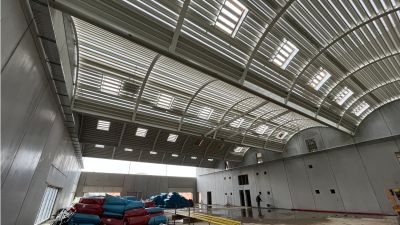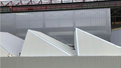 Tekst: Pour le nouvel hôtel de police destiné au poste principal de la zone de police Landen – Linter – Léau, l’accent est placé sur le rayonnement et le langage architectural correct. Les façades ont été finies au moyen de panneaux profilés Pyramid prélaqués à profil SAB doté d’un revêtement blanc Colorcoat Prisma®. A la demande du personnel de police, les fenêtres ont été protégées par des plaques en acier qui ont été profilées et peintes dans l’atelier de construction de l’acier. La toiture shed est constituée de poutres américaines pour les grandes portées et est finie au moyen de plaques de toiture profilées d’une épaisseur de 0,6 mm de Joris Ide qui sont prélaquées avec un revêtement Granite HDX d’ArcelorMittal.