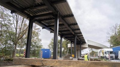 Tekst: La nouvelle passerelle du rond-point du Gros-Tilleul prend forme dans le cadre du réaménagement de l’A12. Elle a été installée mi-août 2025. Il a fallu trois grues mobiles, dont deux avec une capacité de levage de 700 tonnes, les plus grandes grues mobiles disponibles en Belgique.