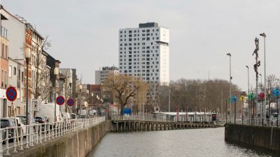 Ondertitel: L’imposant immeuble est un nouveau point de repère dans la région.