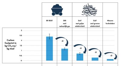 Tekst: Pour l’immeuble de bureaux d’Environnement Bruxelles, de l’acier a été utilisé dans la structure portante principale et dans les parties fermées des façades extérieures et intérieures, ce qui a permis une architecture légère, précise et stable. La structure de la toiture (et d’une partie de la façade) est particulière. Généralement, celle-ci reste limitée à une structure jointive, mais dans ce cas, des tôles émaillées au four noires ou des panneaux PV ont été encore fixés dessus. Pour la finition, de l’acier a été utilisé en abondance : dans les panneaux de façade sandwich, les escaliers intérieurs, etc.