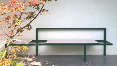 Tekst: Dans le cadre de la création du parc public Sainte-Agathe, les éléments de ferronnerie installés comptent notamment deux barrières et portails d’entrée en acier auto-patinable ('corten'), des bancs (structure métallique et couverture bois) et une grande table de piquenique. Les matériaux mis en œuvre sont coordonnés et la palette est limitée : bois, béton désactivé, terre cuite, acier auto-patinable.