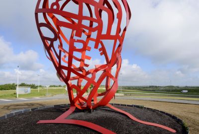 Tekst: One World est une installation d’art publique réalisée par l’artiste Arne Quinze à l’occasion du dixième anniversaire du festival de musique électro TomorrowLand. Le projet se compose de deux parties : une sculpture en acier peint de 26 m de haut et une passerelle avec platelage en bois de 537 m. L’emploi de l’acier a permis une réalisation tout en finesse et en légèreté.