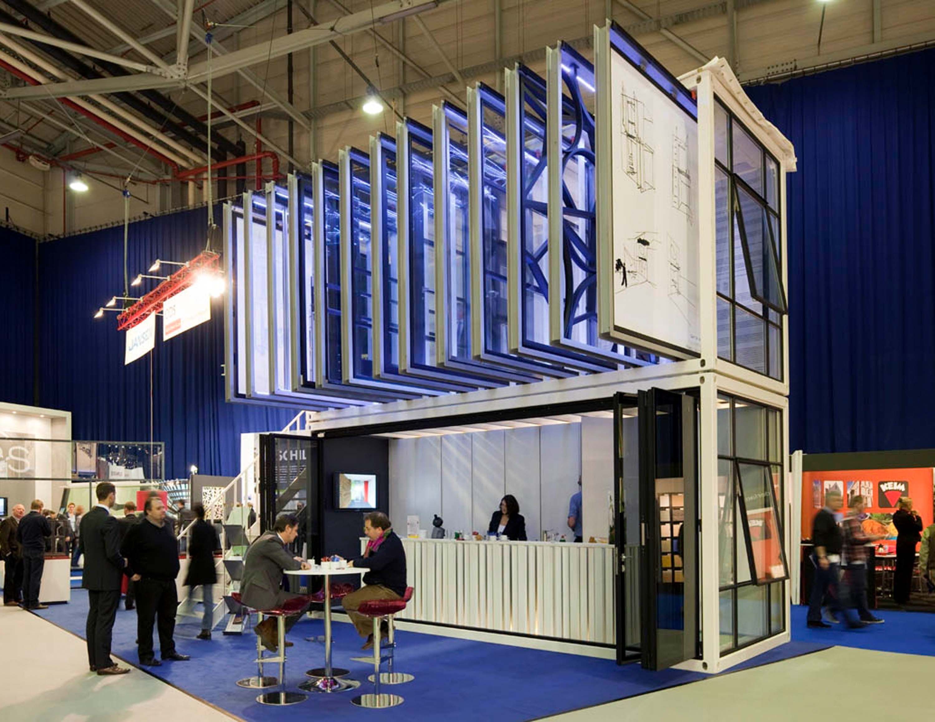 ODS en Jansen kwamen op de Gevel 2012 voor de dag met een nieuw beursstandconcept. Om hun stalen raam-, deur- en gevelsystemen te presenteren, lieten ze SCULP(IT) ARCHITECTEN een flexibele stalen stand ontwerpen die op diverse manieren kan worden opgesteld. Hij bestaat uit twee op elkaar gestapelde modules (6 meter lang, 2,4 meter diep, 2,8 meter hoog) die stevig aan elkaar verankerd zijn met ‘twist locks’ en opgebouwd zijn uit warm gewalste kokers (S 275 120 x 120 x 8 mm). De bovenste module bevat dertien railsystemen, waarin de raamprofielen van Jansen bevestigd worden. Een RGB-ledverlichting zorgt hier voor een fijn visueel effect. De onderste module herbergt onder andere een onthaalzone. In vergelijking met andere, klassieke standen kan deze nieuwe stand op zeer korte tijd worden opgebouwd en wordt er bij opbouw en afbraak slechts een minimum aan afval geproduceerd. Hij kan ook eenvoudig per vrachtwagen vervoerd worden.