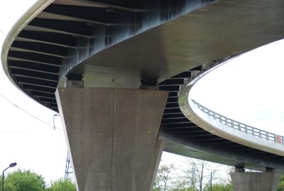 Tekst: <p>La ville de Roulers a décidé d’ériger une passerelle pour piétons et cyclistes pour franchir en toute sécurité l’Albert I-laan très fréquentée. Vu l’espace relativement réduit dans le sens de la longueur, il a été décidé de prévoir une voie d’accès en spirale des deux côtés. Le pourcentage de la pente a pu ainsi être maintenu à un niveau sûr et confortable.<br>