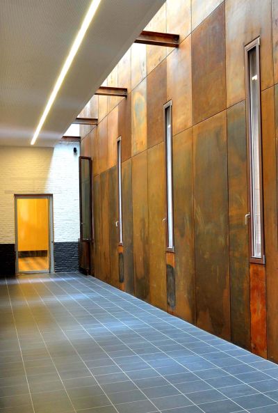Tekst: <p>Le crématorium de Hofheide, près d’Aarschot, est érigé dans une vaste pièce d’eau dans un coin de nature vierge du Hageland. Le terrain se situe entre le côté nord et le côté sud de la chaîne de collines.</p><p>Les architectes voulaient créer une architecture apparentée à un reliquaire; un bâtiment conçu comme un sarcophage. L’objectif était de donner à l’ensemble un caractère sacré sans évoquer une religion spécifique. La lumière, l’ambiance et l’eau joue un rôle important. Le bâtiment est très fermé et émane par la lumière indirecte une ambiance intime.</p><p>Sur tout le pourtour de la grande construction massive, un auvent en acier a été suspendu, pour la protéger comme un sarcophage. L’auvent est constitué de bandes d’acier auto-patinable, fixées l’une à l’autre et torsadées pour procurer une rigidité suffisante.</p><p>La menuiserie extérieure est aussi en acier auto-patinable qui s’intègre avec le volume massif et l’environnement avec sa belle couleur rouille.</p><p>Au crématorium d’Hofheide l’on peut faire ses adieux de manière formelle et sereine aux défunts que l’on peut quitter l’âme en paix.</p>