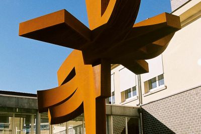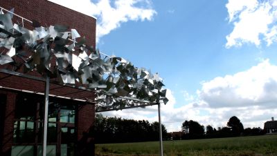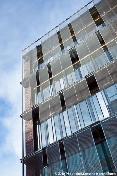 Tekst: <p>La façade en verre, orientée au sud, de l’accès entre deux bâtiments existants de la faculté louvaniste des Sciences sociales doit être équipée d’une protection solaire. Afin de transcender la simple fonctionnalité, il a été décidé d’y associer une œuvre d’art. La volonté de limiter le porte-à-faux et le poids du pare-soleil a entraîné le choix de l’acier.<br>