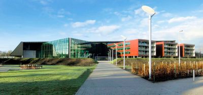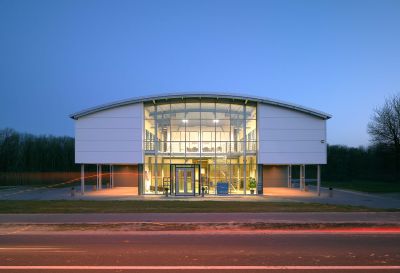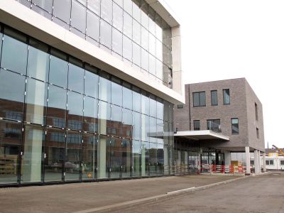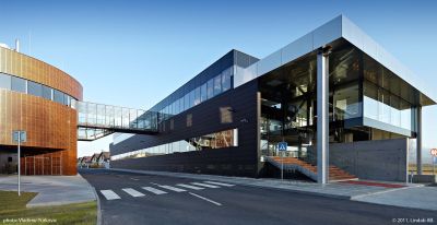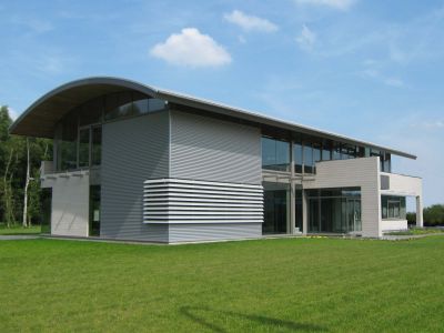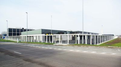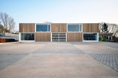 Tekst: <p>Le bâtiment abrite un centre de formation et d’innovation logistique et se trouve sur une presqu’île de l’étang existant. Le volume a été érigé sous un sol artificiel de niveau. Il s’ensuit une toiture verte praticable avec parcours finlandais. Le bâtiment est accessible par une passerelle.</p><p>La façade du côté de l’étang est conçue comme un ensemble organique et est finie par un habillage de façade en bois thermiquement renforcé. La forme particulière a nécessité une étude à l’aide de l’ensemble 3D Autocad. A la base, l’entrée principale est un parallélogramme, les autres murs rideaux forment des trapèzes. En outre, ces deux éléments ont été conçus comme des façades infléchies dans l’espace, ce qui rend unique la forme de tous les montants et de toutes les traverses.</p><p>Le bâtiment abrite quatre salles de cours, une salle de pratique, une salle pour le Conseil d’Administration et deux auditoires à associer, pouvant accueillir chacun 100 personnes. Le centre de formation et d’innovation a reçu le label de durabilité BREEAM Outstanding. </p>