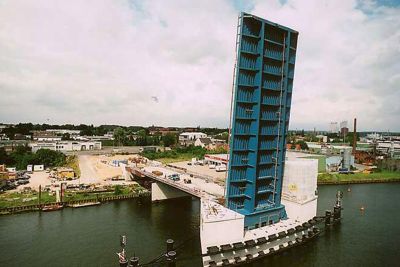 Tekst: <p>Le Pont de Baakenhafen se trouve dans la HafenCity, un nouveau district urbain sur le port d’Hambourg en plein développement. Le nouveau pont enjambe un ancien bassin du port de mer sur l’Elbe.</p><p>Le pont est formé de deux parties latérales fixes qui reposent sur des colonnes en double V et une partie centrale amovible, qui peut être soulevée à l’aide d’un ponton et de la marée pour laisser passer de grands bâteaux-musées.</p><p>Les doubles colonnes en V reposent sur des piles centrales dans le bassin et sont pensées comme de massifs éléments sculpturaux qui émergent et portent le pont.</p><p>La structure du pont est composée de deux poutres-maîtresses fermées en L avec entre elles des traverses ouvertes et un tablier orthotrope. Les poutres-maîtresses dépassent au-dessus du tablier et de la chaussée. Des traverses en saillie soutiennent le trottoir, séparé de la chaussée par la poutre-maîtresse elle-même.</p><p>Du fait que le pont ondule, le jeu des traverses de hauteurs variables attire l’attention. Le pont trouve parfaitement sa place dans son environnement et invite à la promenade depuis les quais.</p>
