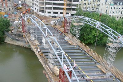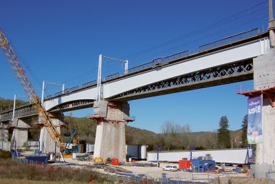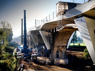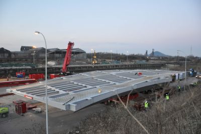 Grâce à l’utilisation d’une structure portante en acier, il a été possible de limiter au maximum les travaux sur chantier. En effet, comme le pont surplombe des voies de chemin de fer très fréquentées, il était crucial de limiter au maximum la durée de montage. Une fois de plus, l’acier a prouvé sa force sur ce point grâce à un montage rapide.
