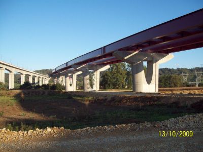 Les pieux de fondation du nouveau pont font face au pont existant. Les travées sont variables et vont jusqu’à 74 m. Il s’agit d’une structure mixte béton-acier. Le tablier en béton armé repose directement sur deux poutres caissons en acier. Les haubans déchargent ces poutres et en font une structure très ouverte. <br>