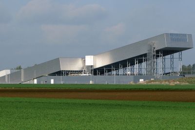 Les dimensions sont impressionnantes. Le volume, de 566 m de long, 133 m de large et 16 m de hauteur, a été construit avec une structure d’acier S235 de 6.000 tonnes et recouvert de 85.400 m2 de tôle. <br>