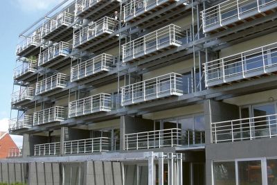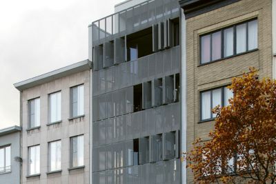 Tekst: <p>Ce projet de 4 unités de logements réparties en 2 immeubles bi-familiaux combine les avantages de l’immeuble à appartements et de la maison mitoyenne de manière à offrir aux occupants un maximum d’espace et d’intimité dans un volume compact. Celui-ci est agrémenté de grandes terrasses reposant sur une structure métallique en acier galvanisé à chaud. Les profilés verticaux, dans l’alignement des mitoyens, supportent les cadres de terrasses. Dans ces cadres sont placées des prédalles formant le coffrage perdu de la dalle de la terrasse. Le choix de l’acier pour la structure s’est imposé pour sa facilité de mise en oeuvre et sa légèreté, en opposition au volume compact de l’édifice et afin de ne pas entraver l’apport de lumière dans le bâtiment.</p>