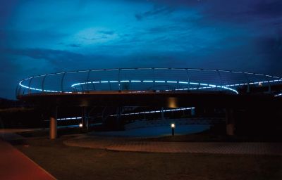 Tekst: <p>Le Hovenring est un rond-point cyclable aérien qui, avec son impressionnant pylône, marque l’entrée d’Eindhoven. L’imposant pylône haut de 70 m et le fin tablier circulaire d’un diamètre de 72 m constituent un nouveau repère dans le paysage. Même le soir, lorsque le pont bénéficie d’un spectaculaire éclairage, ce qui correspond bien à l’identité d’Eindhoven comme Ville Lumière.</p><p>Pour garder une pente confortable pour les cyclistes, le rond-point a été aménagé en profondeur. Ainsi, la différence de niveau pour les cyclistes a pu être réduite à 1,5 m. Le tablier flottant est fixé par dessus au pylône grâce à 24 haubans en acier, tandis qu’il est soutenu en dessous par des points d’appui en forme de M. Ces derniers sont constitués de deux barres de compression en forme de cigare qui, ensemble, forment un V, complétées sur les côtés par deux tirants. L’ensemble donne un point d’appui en forme de M. En outre, le tablier a une construction en boîte dans laquelle des nervures sont soudées sur 332mm d’axe en axe aussi bien sur la plaque inférieure que sur la plaque supérieure. On obtient ainsi une finesse maximale.</p>