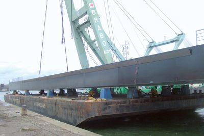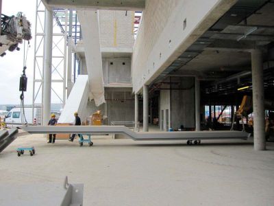 Tekst: <p>Pour répondre à la demande croissante de stockage de liquide dans le port d’Anvers, Vopak ACS a construit un nouvel emplacement de chargement et de déchargement au niveau du quai 503.</p><p>Pour garantir la continuité de la production, il a été décidé de prémonter l’ensemble de la construction de cette jetée ainsi qu’une grande partie de la tuyauterie offshore, de la livrer et de la placer complètement en un seul transport par eau. Pour ce faire, le constructeur métallique a opté pour l’érection de la construction en acier sur un chantier à environ 2 km, son transport ultérieur au moyen d’un système roll-on/roll-off, et son placement sur les boulons d’ancrage auprès de Vopak ACS, le tout en une seule journée ouvrable.</p><p>Pour déplacer l’ensemble de la construction en acier et les installations (près de 300 tonnes), des poutres d’appui spéciales ont été montées, reposant chacune sur trois unités de roulement de 48 roues chacune. Ces unités soulèvent l’intégralité de la construction et amènent celle-ci sur le ponton amarré. Après le positionnement, les unités de roulement ont abaissé la construction en acier, et les colonnes ont été ancrées sur les boulons d’ancrage effondrés.</p>