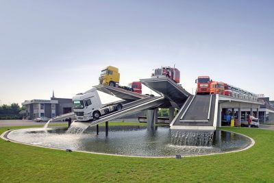 Tekst: <p>Pour franchir la voie rapide à Bruges, le choix s’est porté sur une ‘passerelle paresseuse’, combinaison d’une passerelle et d’un escalier pour vélos. La particularité est l’application décroissante de la formule de l’escalier, c’est-à-dire que les marches ont des dimensions différentes. Le tablier de près de 4 m de large est constitué de tôles d’acier de 10 mm d’épaisseur, rigidifiées par 7 raidisseurs longitudinaux. Deux grandes cloisons longitudinales transforment la partie centrale en caisson. De chaque côté de celle-ci se trouvent des sections dont la face inférieure est oblique et se prolonge dans le bord rond de la passerelle. La passerelle est constituée de quatre travées et peut se déformer librement dans le sens de la longueur, de manière à éviter tout effet de ressort. Des renforts intérieurs ont été appliqués aux endroits où les piles supportent le tablier. Dès la conception, il était évident que cette structure élégante ne pouvait être construite qu’en acier. </p>