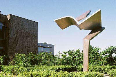 L’œuvre d’art, placée environ 40 cm devant la façade, est un texte écrit en lettres d’acier inoxydable. Le lettrage extérieur contribue à l’identité et au caractère reconnaissable du bâtiment.<br>