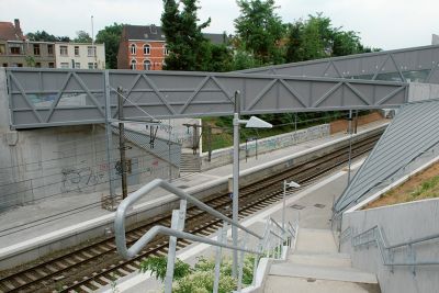 Tekst: <p>Pour assurer la liaison entre les terrains industriels et les bureaux de la caserne Lieutenant Coppens à Brasschaat, la commune souhaitait de petites passerelles légères. Pour satisfaire cette volonté, le choix s’est porté sur la conception de passerelles papillon. Les passerelles papillon ont une structure portante asymétrique en forme de papillon. Celle-ci reprend de manière optimale la charge uniforme et les efforts de torsion. La passerelle papillon est élégante et expressive et demande un minimum de matériau. Les portées peuvent aller jusqu’à 24 m. La structure en acier est galvanisée.</p>