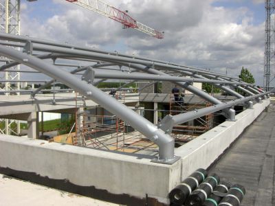 Tekst: <p>Le projet consiste dans la réalisation de 6 ensembles de charpentes en acier pour les ascenseurs panoramiques transportant les usagers depuis la galerie commerciale aux quais d’embarquement et aux passerelles supérieures d’accès. La réalisation est faite d’une structure tubulaire légère en acier inoxydable. Elle est constituée d’anneaux successifs reliés par des fines colonnes. Les travaux devaient également comprendre la mise en œuvre de la vitrerie bombée. Les verres feuilletés sont pincés par des plats métalliques sur les anneaux. Les parties techniques de l’ouvrage sont habillées par de la tôlerie en inox brossé grain 320 qui marque l’extrémité supérieure des cages d’un couronnement scintillant. L’aspect esthétique est en cohérence avec le reste du bâtiment et plus particulièrement les châssis en acier des vitrines des boutiques.