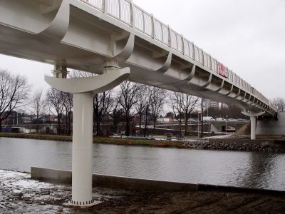 La passerelle pour cyclistes mesure 440 m de long et est constituée de 18 travées de 20 mètres. Chaque partie possède une amorce de 80 à 90 m. L’ensemble de la structure est constitué d’un peu plus de 480 tonnes d’acier de construction. La passerelle est suspendue à 23 mâts coniques en acier. L’acier est de qualité S235 et S355.<br>