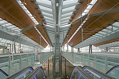 <p>Les qualités de légèreté, de résistance et de précision de l’acier ont permis de concevoir la gare comme un espace public monumental, ouvert, pratique et lumineux. L’audace des structures et de leur mise en œuvre témoignent des traditions de savoir faire technique dans une ville - berceau de l’industrie sidérurgique.</p>