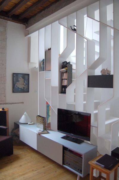 Tekst: <p>Un des défis majeurs de ce projet a été la création d’un nouvel escalier adapté à l’architecture industrielle de cet immeuble des années trente.<br>‘Blanc sur blanc’, cet escalier
