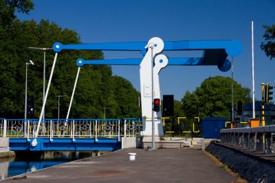 Tekst: <p>À Bocholt, le pont basculant de l’écluse n°18 du Zuid-Willemsvaart devait être entièrement remplacé. Le nouveau pont se compose du tablier basculant, des pylônes portant le contrepoids et des bras de balancier avec la caisse comme contrepoids. Toutes ces parties sont en tôles d’acier de qualité S355 J2G3. Les dimensions du tablier du pont sont de 6 x 10 m. Les pylônes portant le contrepoids ont une hauteur de 6 m. Ce colosse pèse environ 50 tonnes.<br>