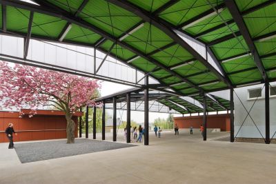 Tekst: <p>Cet auvent a été placé dans la cour de récréation de l’école de Leudelange afin d’assurer aux enfants une protection contre les intempéries, tout en préservant un maximum d’éclairage naturel dans le bâtiment existant. <br>