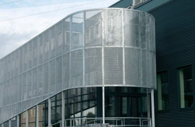 Tekst: <p>La station de pompage Sudcal se situe à l´entrée Nord-Est de la ville d´Esch-sur-Alzette. Il s’agit d’un bâtiment technique qui a pour fonction d´emmagasiner l´énergie pour la transporter en tant que chauffage urbain dans la périphérie. <br />Le choix d´utiliser de l´acier pour le revêtement du bâtiment s´explique par les possibilités que ce matériau offre. Le tissu en acier inoxydable choisi laisse passer l’air à 60%, ce qui garantit le respect des valeurs souhaitées par les techniciens et satisfait les exigences de l’architecte de ne pas laisser apparaître de grilles d’aération. <br />Le tissu est ancré au moyen d’oeillets à manchons tous les 3 m à la verticale. Un serrage à ressort le tient en tension. Pour la salle des pompes les bandes de tissu métallique ont une largeur de 2,00 m et une longueur de 6,60 m, pour le réservoir tampon elles ont 2,50 m de largeur et 14,00 m de longueur. Les bandes étant livrées entièrement préfabriquées, le temps de montage s’est avéré très court.</p>