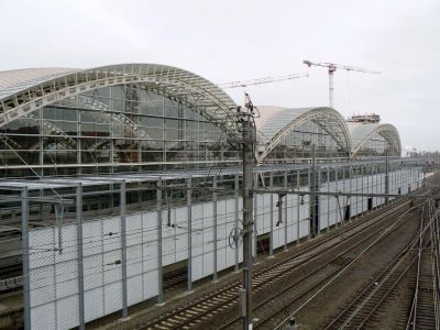 Tekst: <p>Rotterdam Central est une gare d’allure internationale. Sa connexion au réseau européen de trains à grande vitesse et au réseau de RER. RandstadRail lui font augurer une forte augmentation du nombre de voyageurs d’ici 2025 – de 110.000 actuellement à 320.000 par jour.</p><p>Le hall des voyageurs est réalisé en acier inoxydable brillant et forme un emblême sculptural sur l’axe culturel de Rotterdam. Le hall a un toit pliée, tel q’un origami, et est éxécuté en acier. Le toit et les auvents sont finis sur la face extérieure avec de l’acier inoxydable, le plafond à l’intérieur est fini en bois.</p><p>La structure porteuse principale de la couverture des voies consiste en un système de fermes longitudinales en acier non étançonnées au milieu des six quais et sous les deux façades principales. Les colonnes d’acier ont la forme d’un Y majuscule, pour rappeler la forme des anciens auvents protégeant les quais. La couverture des voies est habillée de verre photovoltaïque ainsi que la façade nord.</p>